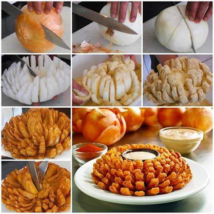 Egy nagy fej hagyma bevagdosva panírozva megsütve igazi különlegességnek számít egy ebédnél vagy kerti partinál smile hangulatjel