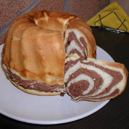 Pihentetés után megkenjük tejjel a kuglófot, és betesszük a sütőbe. 30-35 perc alatt megsül (én fogpiszkálóval szoktam ellenőrizni, hogy jó-e. Csak alsó sütéssel sütöm, nehogy a teteje megégjen). A formában hagyva letakarjuk kb. 15 percre, aztán kiborítjuk, és hagyjuk langyosra hűlni. Csak ekkor szeleteljük.