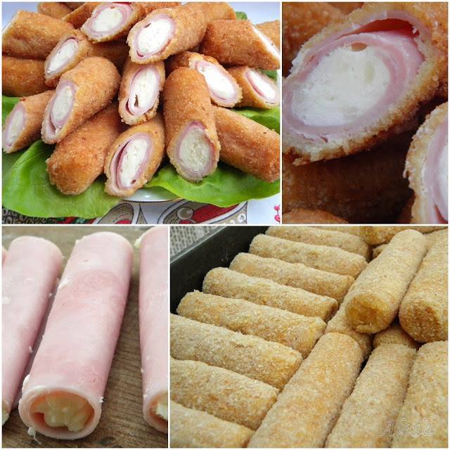 A vajon kissé megpergeljük a lisztet majd hozzáadjuk a tejfölt,a sajtot és a sót. 1-2 percig főzzük, míg besűrűsödik, majd krémesre kavarjuk és kihűtjük. Minden sonkaszelet egyik végére, kiskanál segítségével krémet teszünk, majd szorosan felcsavarjuk. A tekercseket tojásba mártjuk és zsemlemorzsába hempergetjük majd megismételjük még egyszer, tojásba és zsemlemorzsába, vigyázva , hogy a végek jól bezáruljanak.Egy órára hűtőbe tesszük, majd forró olajban, hirtelen kisütjük