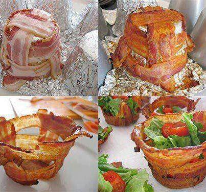 Bacon szeletekből kis saláta kosár smile hangulatjel Guszta..smile hangulatjel Ti is így gondoljátok???